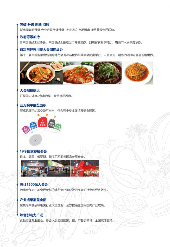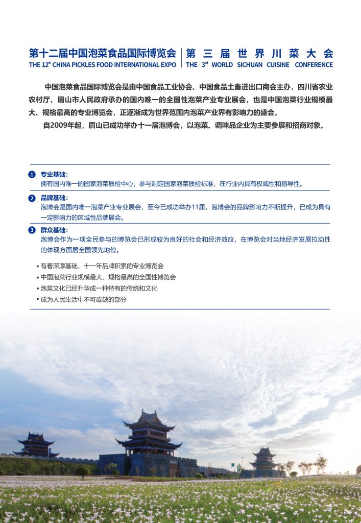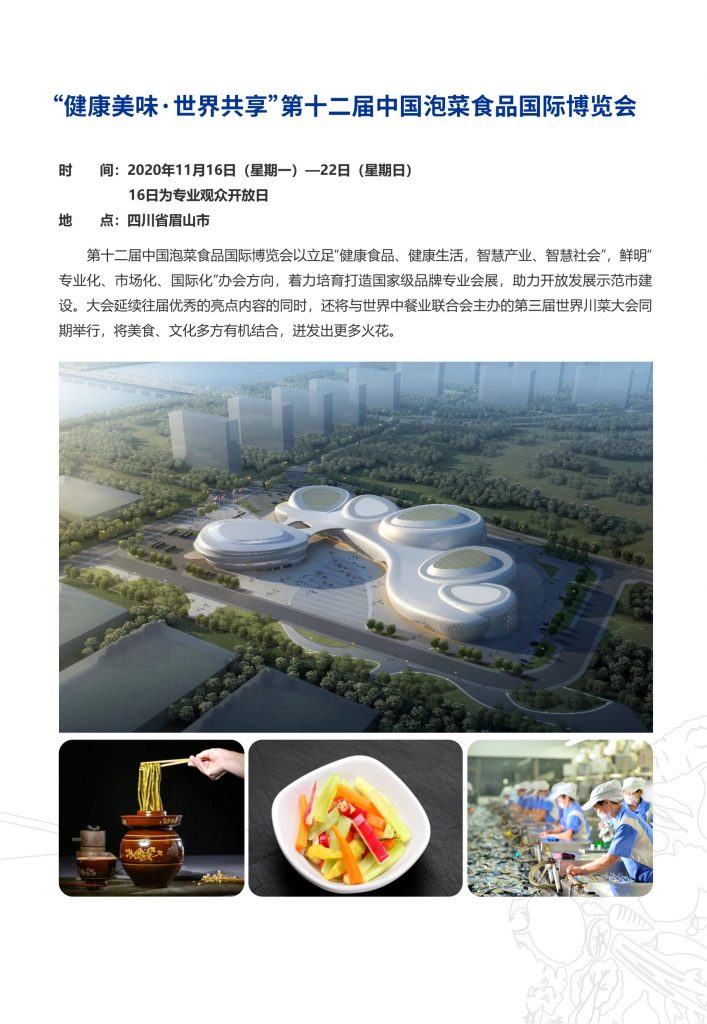 中国泡菜食品国际博览会是由华体会体育电子 、中国食品土畜进出口商会主办,四川省农业农村厅、眉山市人民政府承办的国内唯一的全国性泡菜产业专业展会,也是中国泡菜行业规模最大、规格最高的专业博览会,正逐渐成为世界范围内泡菜产业界有影响力的盛会。