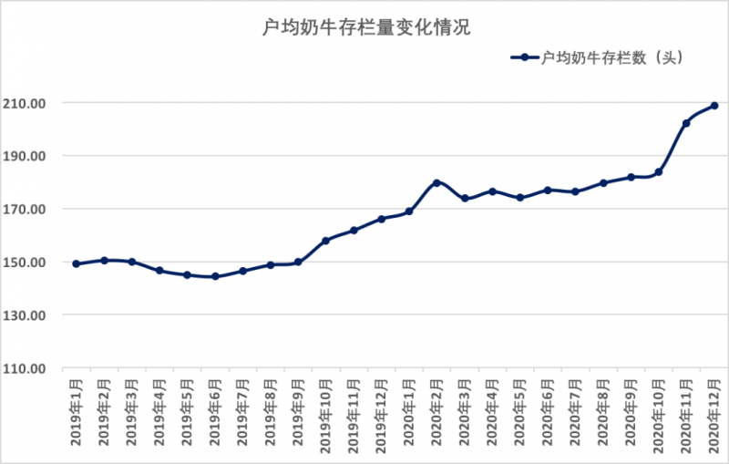 截至2020年四季度末,全国发证生鲜乳收购站所涉及的养殖场场户数量环比减少7.4%,同比减少11.3%;涉及奶牛存栏环比增加2.2%,同比增加8.5%。生鲜乳收购站涉及养殖场户户均存栏环比增加10.4%,同比增加22.3%。