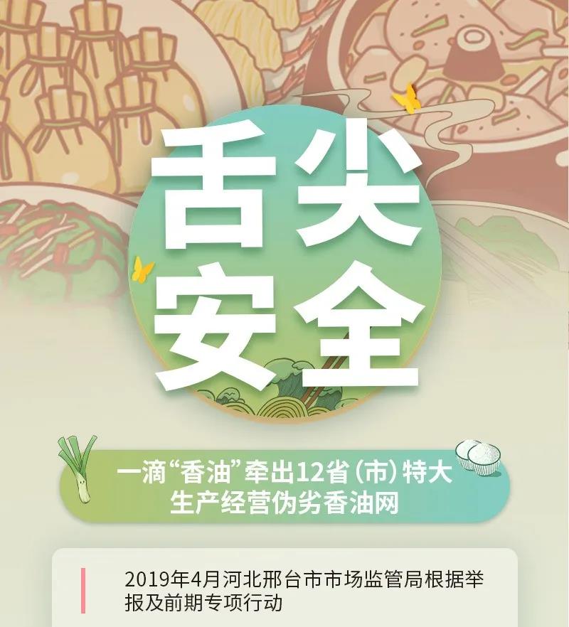 根据群众举报线索,河北省邢台市市场监督管理局联合公安部门查办了一起特大跨区域生产销售伪劣食品案,捣毁了涉及12省(市)的特大生产经营伪劣香油违法犯罪网络,抓获涉案人员83人,牵扯出超过2亿元的涉案货值。