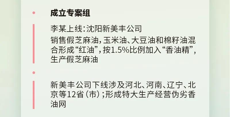 至此,一个专门为香油企业和香油坊提供作假原料的违法犯罪网络逐渐浮出水面。