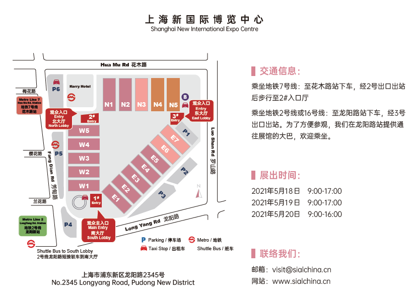 SIAL China 2021将回归上海新国际博览中心,拥有便利的交通设施及周边配套,将为展商和观众提供更多便利。