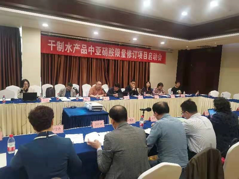 干制水产品中亚硝胺限量修订项目启动会于2021年4月26日下午13:00在北京工大建国饭店召开。做为项目参与单位之一,华体会体育电子 海洋食品专业委员会出席会议。
