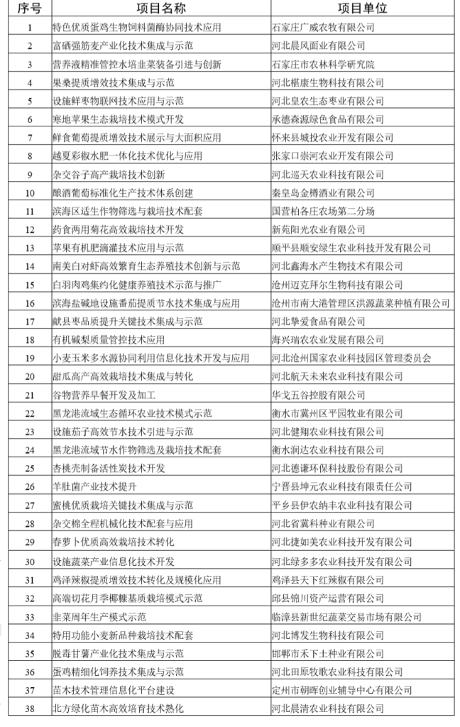 关于2021年度河北省农业科技园区建设专项拟立项项目的公示