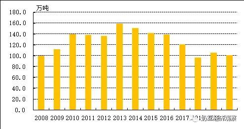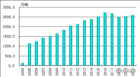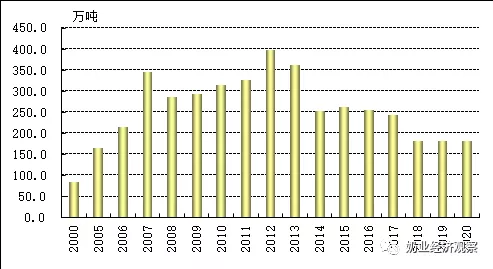 注:规模以上乳品企业(年销售额2000万元及以上)的产量统计,每年企业数量不一样。