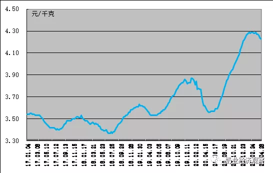 农业农村部监测数据显示,2021年4月份全国玉米月平均价格2.95元/千克,环比下降1.2%,同比上涨37.6%。主产区东北三省玉米平均价格2.72元/千克,环比下降2.3%;主销省广东价格为3.06元/千克,环比上涨0.4%。