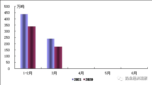 2021年1-3月全国干乳制品产量44.62万吨,同比增长12.95%