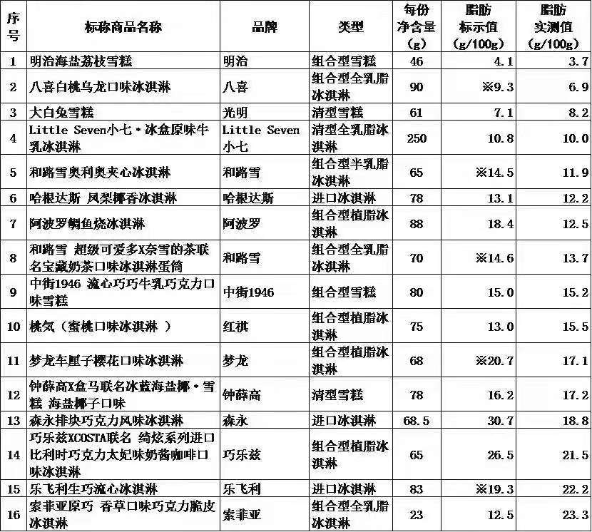本次比较试验共计购买16款冷饮样品,包括12款冰淇淋和4款雪糕,均为当下流行且知名度较高的网红产品,涉及的品牌有钟薛高、巧乐兹、和路雪、哈根达斯、明治等,消费者尤其要注意冷饮中脂肪含量及糖含量超标的问题。