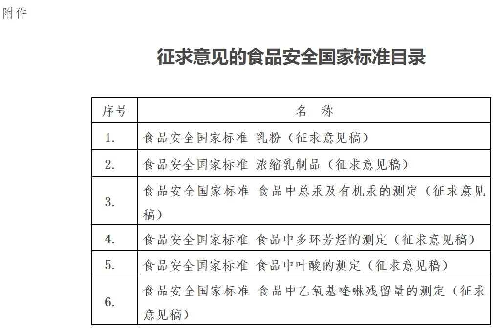 食标秘发〔2020〕2号 各有关单位:根据《食品安全法》及其实施条例规定,我委组织起草了《食品安全国家标准 乳粉》等6项食品安全国家标准(征求意见稿),现向社会公开征求意见。请于2…