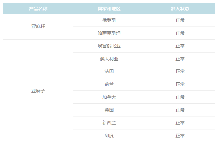 根据海关总署发布的《符合评估审查要求及有传统贸易的国家或地区输华食品目录》规定,我国准许进口亚麻籽的国家有俄罗斯、哈萨克斯坦、加拿大、美国、埃塞俄比亚、澳大利亚、法国、荷兰、新西兰、印度共计十个国家。其中俄罗斯亚麻籽应符合《进口俄罗斯亚麻籽植物检疫要求》,哈萨克斯坦亚麻籽应符合《进口哈萨克斯坦亚麻籽检验检疫要求》。