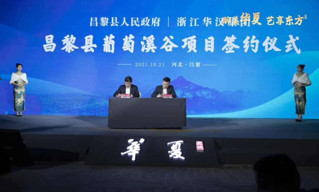 为贯彻落实河北省委、省政府《关于创建特色小镇的指导意见》精神,昌黎县以“葡萄酒+旅游+大健康”理念,探索葡萄小镇主题文化游,打造“葡萄架下慢生活”。昌黎县葡萄溪谷项目由浙江华汉集团投资开发,总投资100亿元,一期计划投资15亿元。项目将立足乡村振兴,对葡萄小镇进行综合开发、建设和运营,对标浙江莫干山,引进世界顶级养生酒店、国内老字号德仁堂等产业,建设世界顶级文旅乐园,打造环渤海经济圈的康养秘境。会上,昌黎县人民政府副县长辛昌亮与浙江华汉集团总经理陈世杰就“葡萄溪谷”项目进行签约。