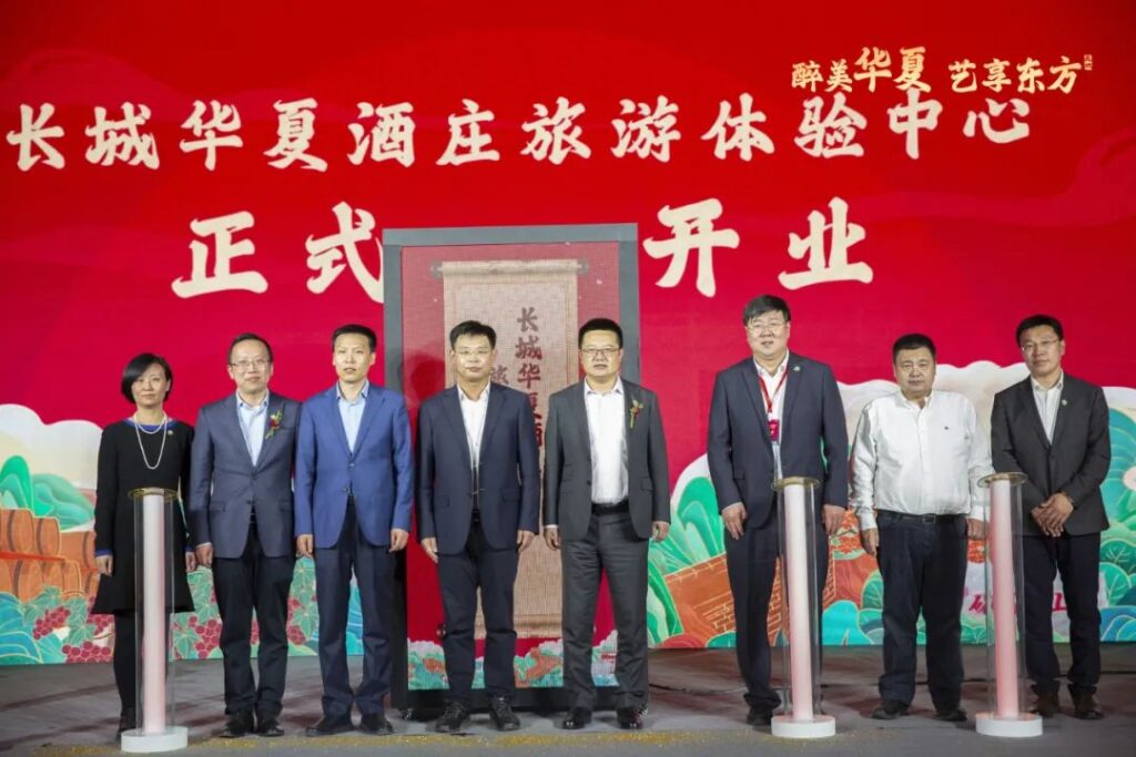 昌黎县副书记岳红江、昌黎县委常委、办公室主任吴学军、中粮酒业总经理助理周鹏、中粮酒业品牌管理部副总经理刘鑫、中粮长城酒业党委副书记、副总经理(主持工作)程军、中粮长城酒业副总经理盛国红、中粮长城酒业副总经理韩朝武共同为华夏酒庄旅游体验中心揭幕。