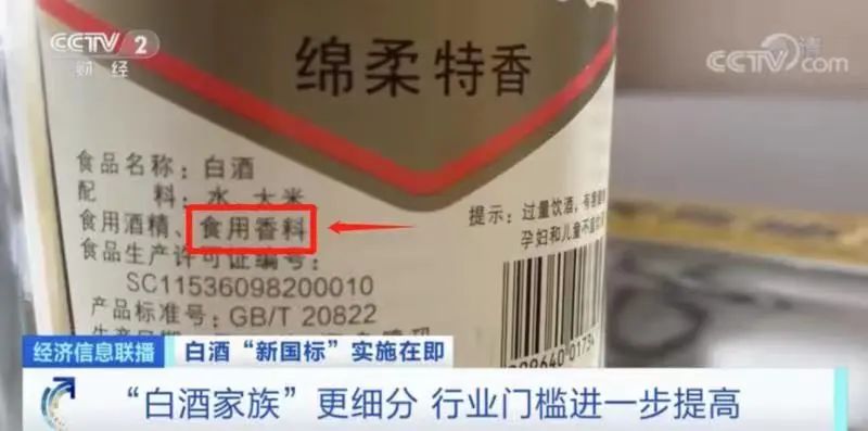 6月1日后,生产的白酒商品标签也将有变化。在“新国标”实施后生产上市的白酒,只要瓶身或者包装上标明了白酒二字,就是粮谷酿造、无添加的白酒。配料表上明确标有“食用香料”的,按照新标准,将被划为“调香白酒”,不得再称为白酒。