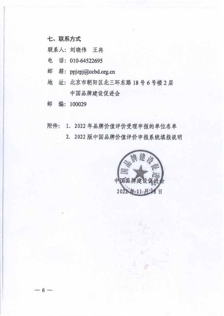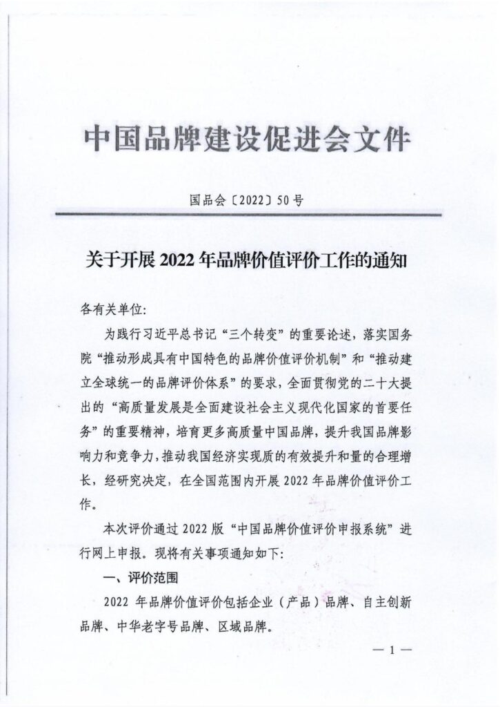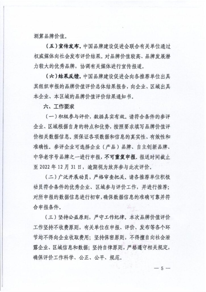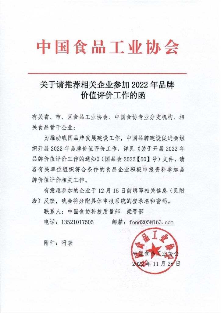 关于请推荐相关企业参加2022年品牌价值评价工作的函