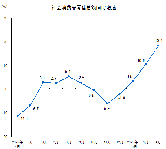 2023年4月份社会消费品零售总额主要数据