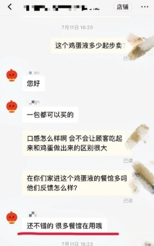 某销量较高网店客服称很多餐馆在用浓缩鸡蛋液。