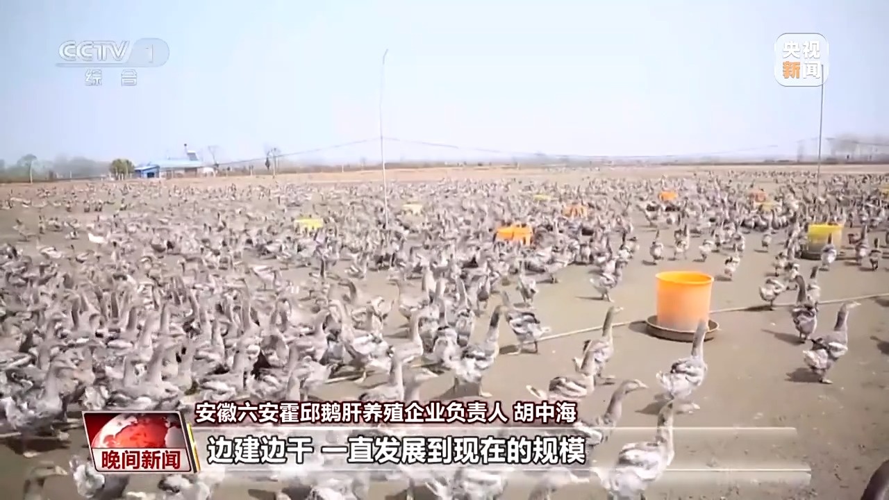 安徽六安霍邱鹅肝养殖企业负责人 胡中海:当时是我的父亲和我二叔,他们去在山东的时候发现了朗德鹅,然后就过去考察学习。回来以后,边建边干,一直发展到现在的规模。