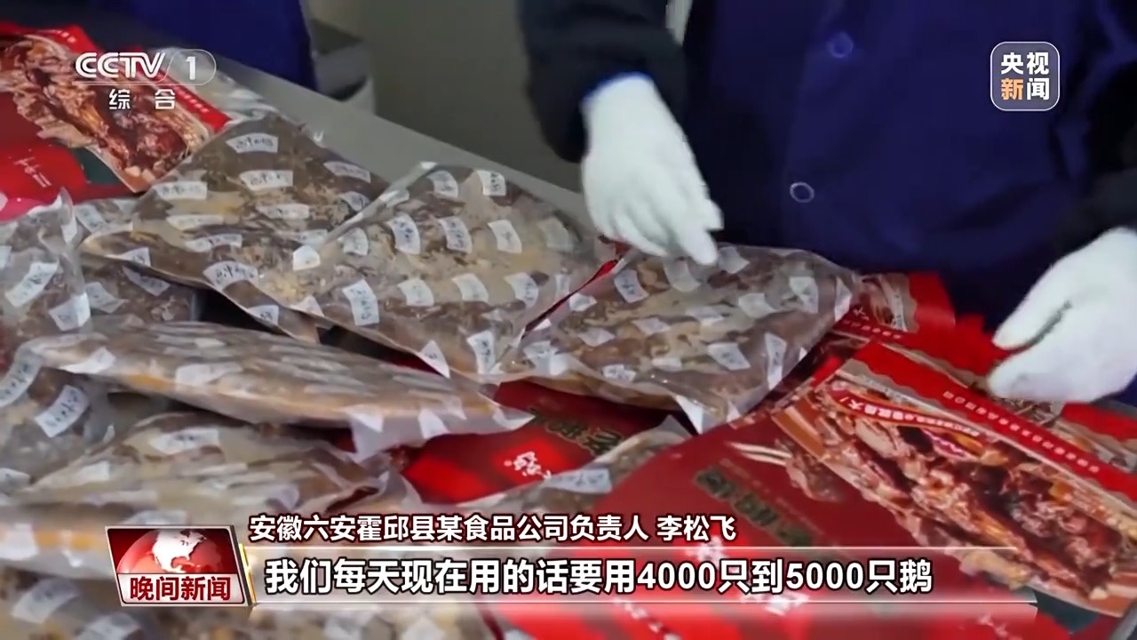 安徽六安霍邱县某食品公司负责人 李松飞:我们取了鹅肝之后,加上鹅肉、鹅脖、鹅头这些东西,包括鹅胗之类,全部做成鹅煲系列,每天用4000到5000只鹅。