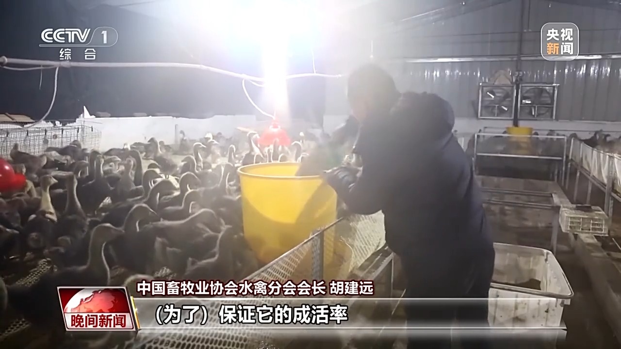 中国畜牧业协会水禽分会会长 胡建远:头一批是搞了1000多只回来当宝贝养,那时候我自己都没有装空调,把小鹅苗买回来以后,我们给小鹅装空调,为了育雏,为了保证它的成活率。