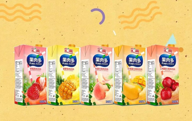 汇源果肉多包装换新,主要针对整体色彩、产品图案等信息进行升级优化。