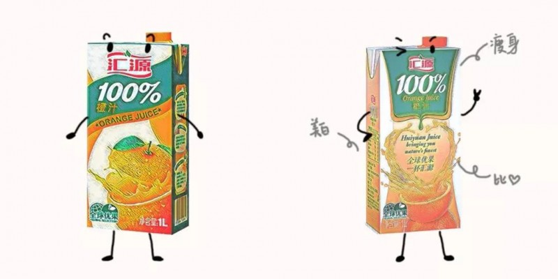 汇源100%果汁进行了瘦身,正面果汁呈心形。