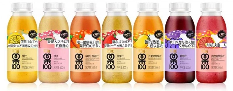 汇源果100与樊登读书联合推出的汇源果100“金句瓶”,其新颖、时尚的设计为消费者带来耳目一新的感官体验!