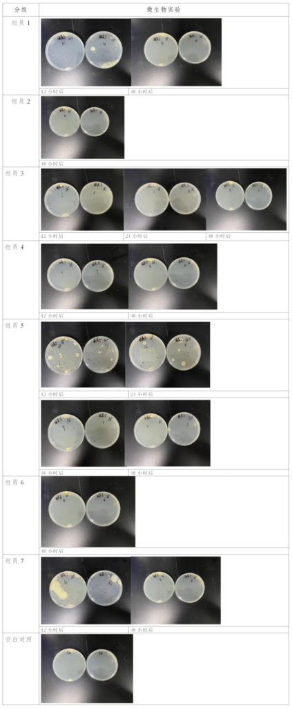 唯一有检出的是菌落总数,这是由于人口腔内存在大量的微生物导致。存放24小时后,绝大部分样本的菌落总数呈递减趋势甚至未检出。可能是饮用水中的营养成分不足以维持微生物的生长,持续的高温环境导致瓶装水中的微生物难以存活所致。