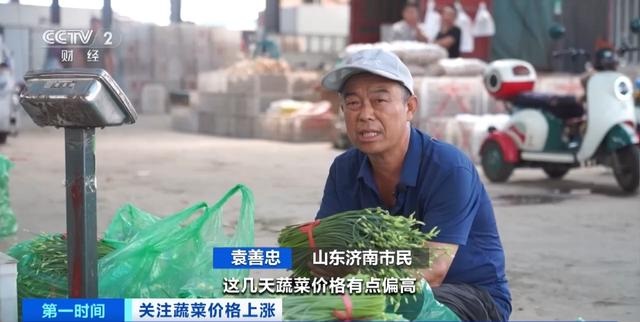 山东济南市民 袁善忠:这几天蔬菜价格有点偏高,主要是供求关系,少了以后价格自然上调,过段时间蔬菜多了,价格就下落了。