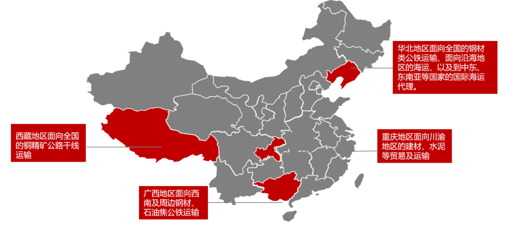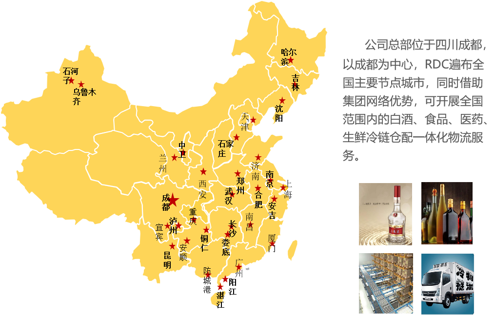 经过多年探索与积淀,已形成了集仓储、运输、配送于一体的标准化综合物流服务模式。目前已在成都、重庆、上海、南京、广州、武汉、郑州、西安、天津、沈阳、贵阳、唐山等地建立了仓储配送基地、项目输出管理、多式联运为一体的综合运输体系。