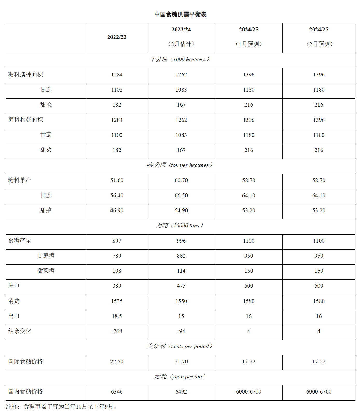 食糖:本月对中国食糖供需形势预测数据不作调整。甜菜糖厂陆续收榨,甘蔗糖厂处于压榨高峰。据中国糖业协会统计,截至2025年1月底,全国累计产糖749万吨,同比增163万吨;累计销糖374万吨,同比增62万吨;销售进度较上年度同期有所放缓。新糖集中上市,工业库存季节性增加,食糖现货供应相对充裕,国内糖价维持弱势震荡。后期需关注天气对压榨进度、甘蔗种植及出苗的影响。