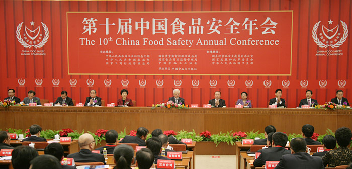 国务院食品安全委员会办公室副主任刘佩智致大会开幕词,农业部副部长陈晓华、国家工商总局副局长王东峰、国家质检总局副局长蒲长城、工信部总工程师朱宏任、国家食品药品监管局副局长边振甲等领导作重要讲话。中国新闻文化促进会会长、新闻出版总署原副署长李东东,解放军报社原社长王梦云将军,中国人民武装警察边防部队副司令张崇德将军,国务院国家机关纪工委副书记周惠,国家发改委产业协调司巡视员贺燕丽,卫生部食品安全与卫生监督局副局长何翔在主席台就座。