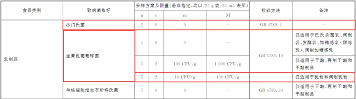 GB 29921-2021中对乳制品致病菌限量要求为: