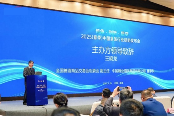 全国糖酒商品交易会组委会副主任、中国糖业酒类集团有限公司董事长王晓龙致欢迎辞。王晓龙表示,70年,在历史长河中不过弹指一挥间,对糖酒会而言,却是一部波澜壮阔、砥砺奋进的创业史。如今,站在新的历史起点,我们更应回望来时路,感恩那些为中国食品工业高质量发展作出突出贡献的品牌与行业精英。此次“中国食品行业趋势发布会”的召开,既是对过去70年的深情追忆与致敬,更是对未来发展的展望与期许。