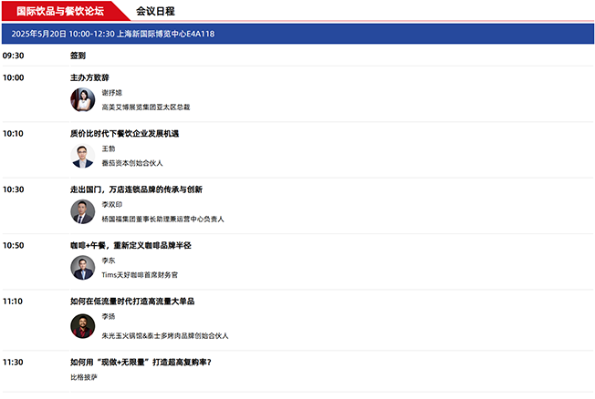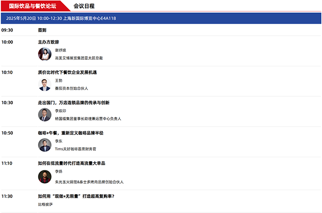 餐饮行业一面蓬勃发展,一面洗牌加速,未来将会呈何趋势?餐饮从业者该如何适应和应对?SIAL世界食品产业峰会-国际饮品与餐饮论坛将邀请知名餐饮集团、热门单店品牌、连锁餐厅代表、知名咖啡企业、新兴茶饮品牌等参与,探讨当前行业发展状况,分享品牌竞争壁垒打造策略,交流出海难点及痛点,开拓健康浪潮下产品创新思路,挖掘连锁化变革下的新机遇。