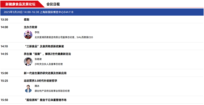 SIAL世界食品产业峰会-新健康食品发展论坛将汇集国内外健康食品科研部门及机构、行业头部企业、技术及配料研发中心、新兴科技公司、专业投资机构等,共同分析预测下一热门赛道,展示最新研究及应用成果,剖析消费者细分需求,探索“三新食品”创新及应用方向,解读最新相关政策法规等,助力健康食品企业在“剩者为王”的竞争中脱颖而出!