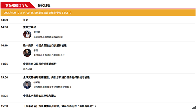 SIAL世界食品产业峰会-食品进出口论坛 将汇集各国商协会代表、国内外食品进出口商和经销商、专业咨询机构等,围绕贸易数据解析、趋势报告发布、消费数据洞察、贸易壁垒突破、品牌模式建设、出海经验分享等议题进行探讨,同时将邀请专家针对食品进出口法律法规等要求进行剖析解读。