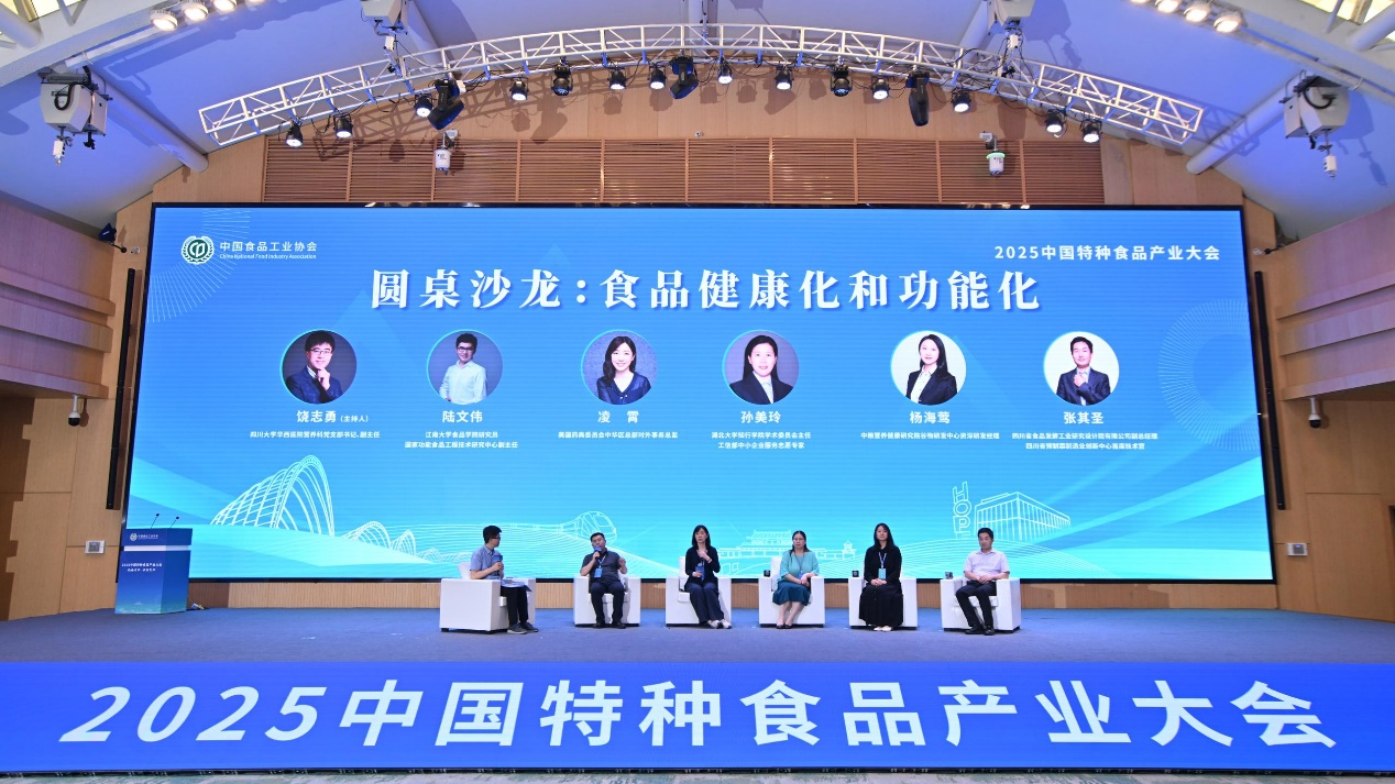 在四川大学华西医院临床营养科党支部书记兼医疗副主任饶志勇的主持下,江南大学食品学院研究员、国家功能食品工程技术研究中心副主任陆文伟,美国药典委员会中华区对外事务总监凌霄,湖北大学知行学院学术委员会主任、工信部中小企业服务志愿专家孙美玲,中粮健康研究院谷物研发中心资深研发经理杨海莺,四川省食品发酵工业研究设计院副总经理、四川省预制菜制造业创新中心首席技术官张其圣围绕“食品健康化和功能化”的话题展开了讨论交流。