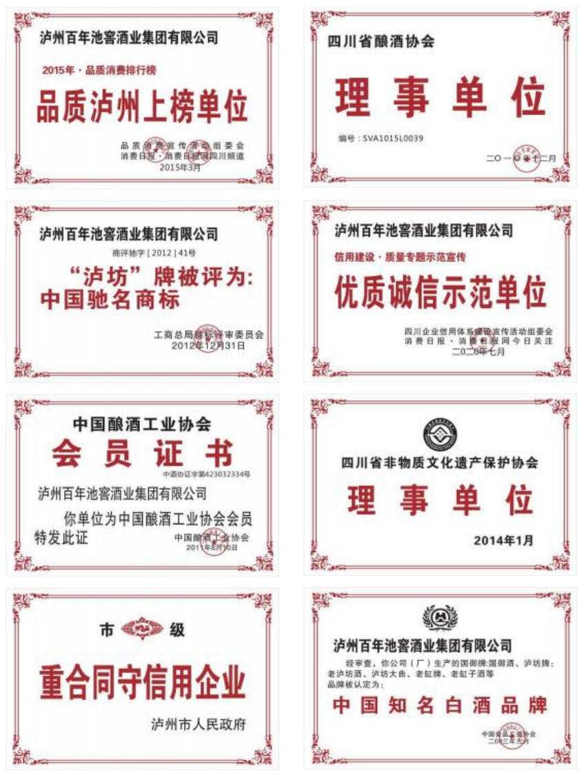 泸州百年池窖酒业集团的产品品种繁多,产品线丰富,集团公司先后荣获“中国驰名商标”,“中国知名白酒品牌”,“国家质量达标食品”称号,“诚信经营示范单位”称号等殊荣,为中国优质白酒领军品牌之一。