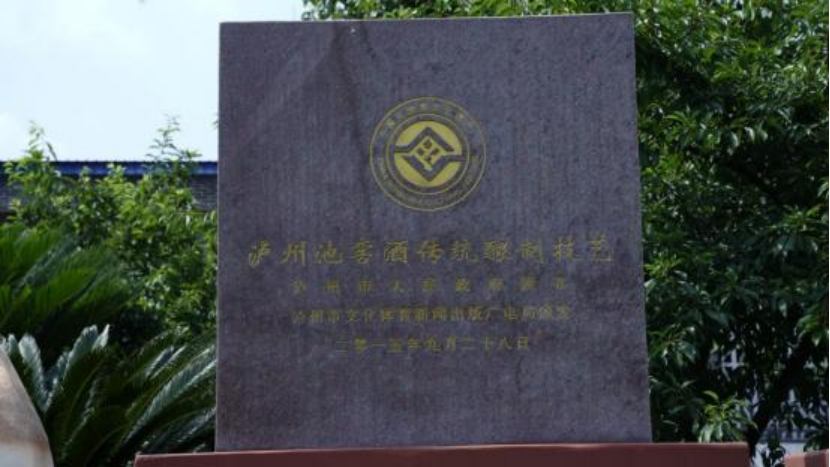 泸州市人民政府颁布“泸州池窖酒传统酿制技艺”石碑