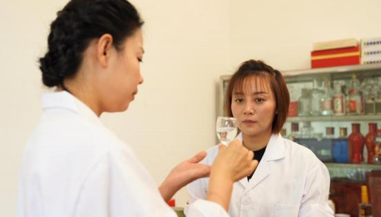 品酒大师赖登燡,白希智和公司董事长酿酒大师钟元成一起品鉴酒体