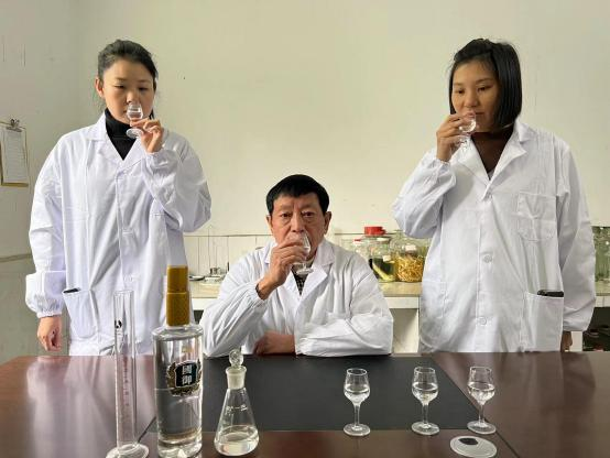 泸州百年池窖酒业集团酿酒技艺第八代传承人钟元成(右一)