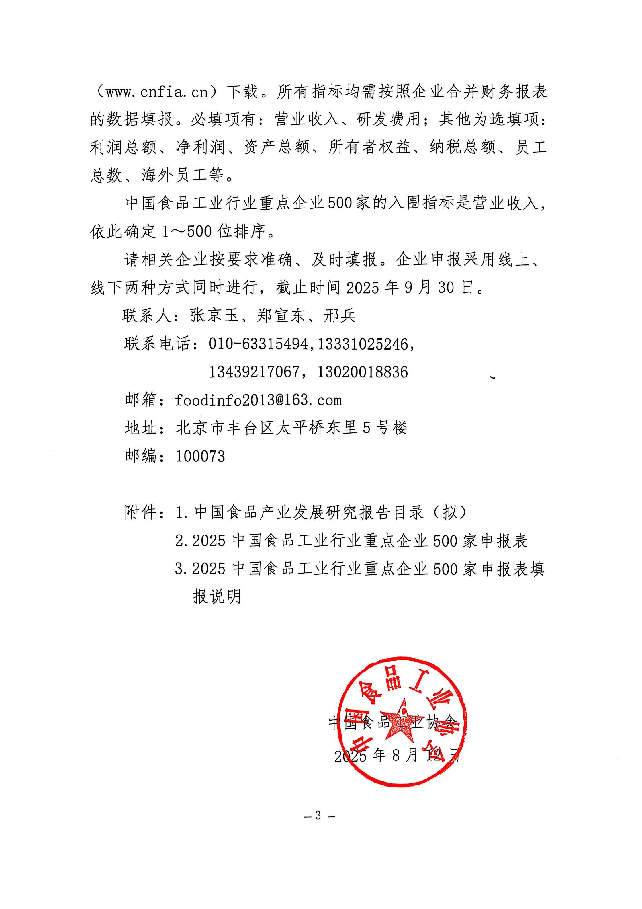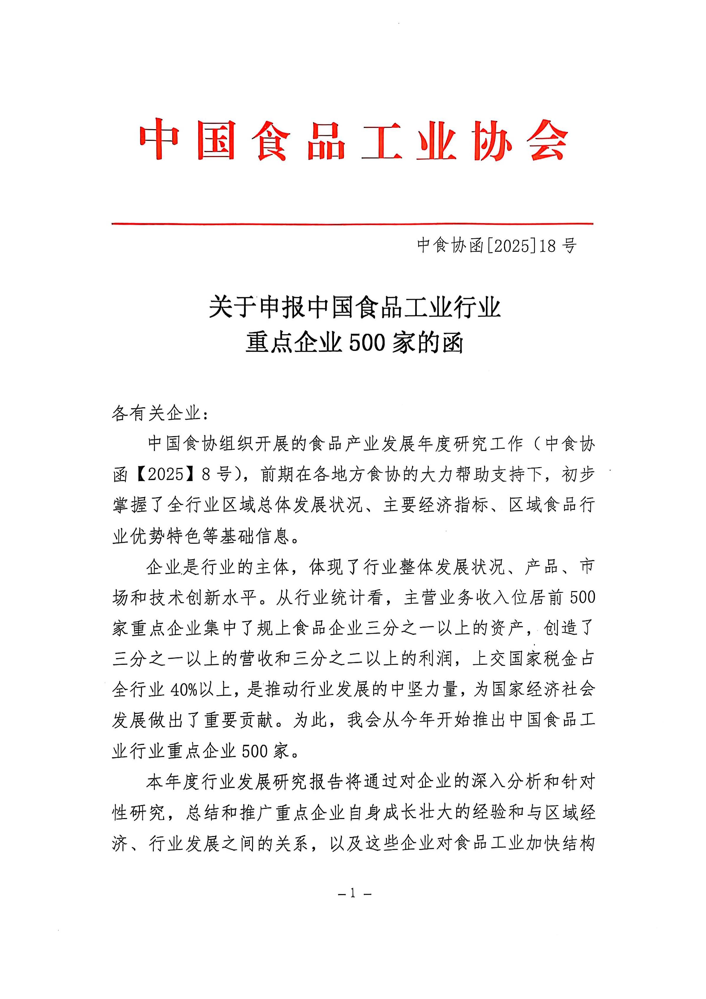 相关链接:关于请组织填报食品工业行业重点企业经济运行主要信息的函