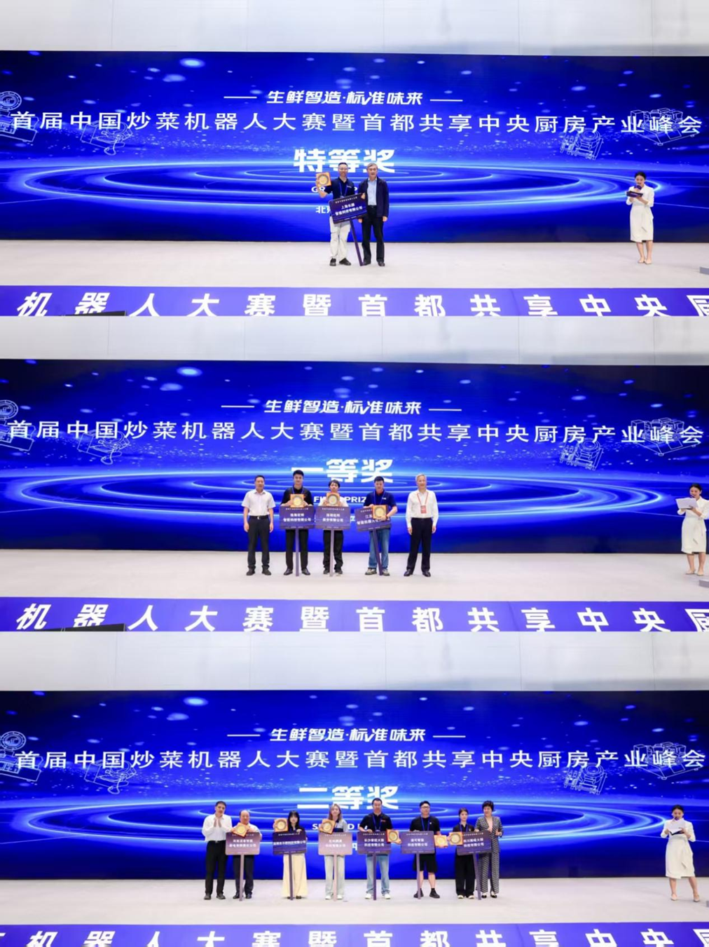 作为本次活动的核心竞技环节,经过近3个小时的激烈比拼,在标准菜包挑战赛中,上海长膳智能科技有限公司获得特等奖;江苏国唯智能机器人有限公司、珠海优特智厨科技有限公司、深圳拓邦股份有限公司获得一等奖;河南溪客智能厨电有限责任公司、深圳不停科技有限公司、苏州鹏满科技有限公司、添可智能科技有限公司、长沙掌控火候科技有限公司、四川熊喵大师科技有限公司获得二等奖。第十三届全国人大常委会农业农村委副主任李春生,农业农村部食物与营养研究所党委书记王晓举、平谷区委书记唐海龙,中国烹饪协会会长杨柳,平谷区区长狄涛分别向获奖企业颁奖。