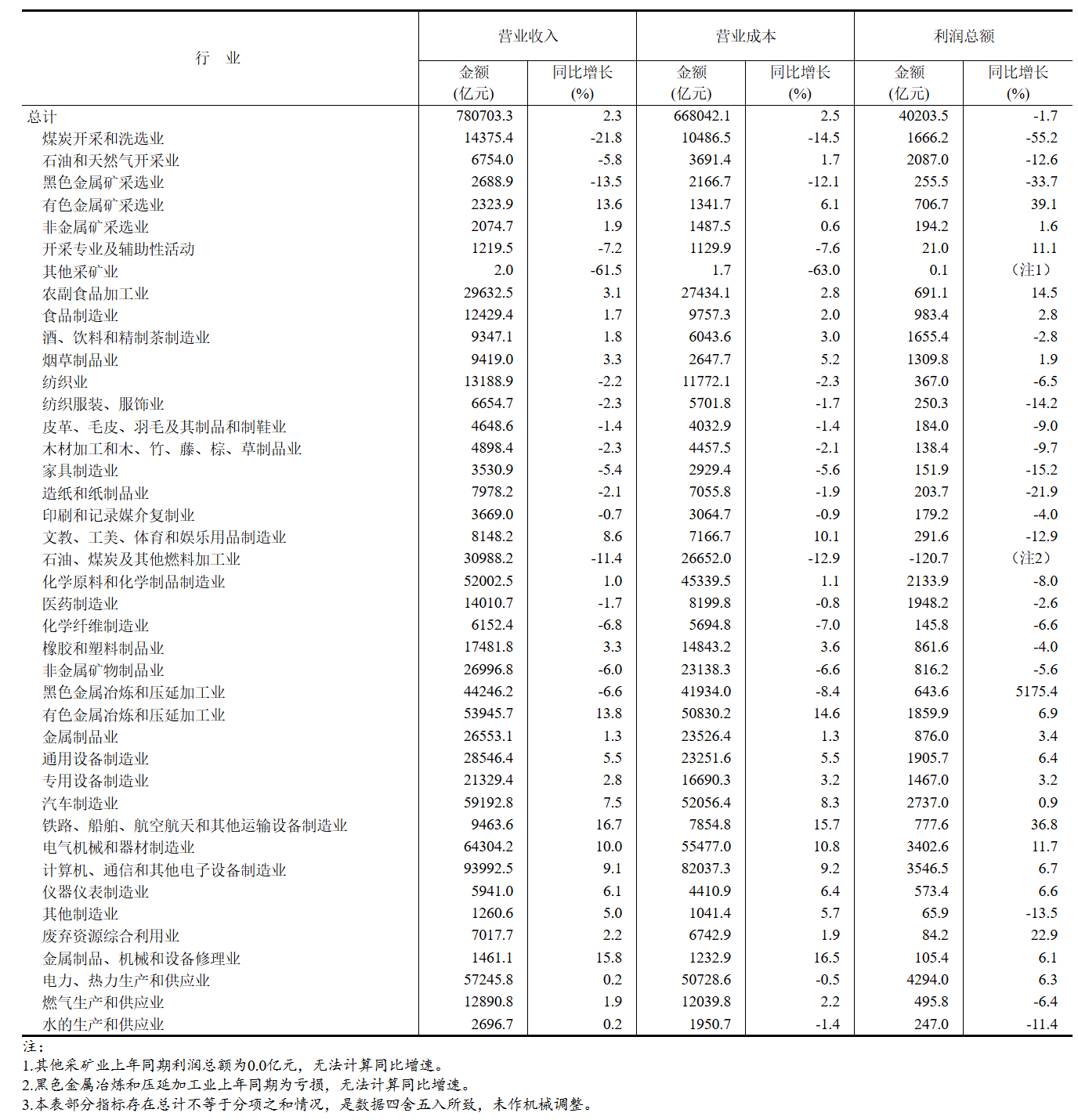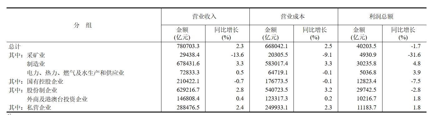 1—7月份,全国规模以上工业企业实现利润总额40203.5亿元,同比下降1.7%(按可比口径计算,详见附注二)。