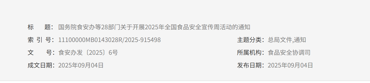 根据《中共中央、国务院关于深化改革加强食品安全工作的意见》有关要求,定于9月11日启动2025年全国食品安全宣传周活动。现就有关事项通知如下: