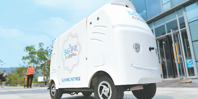 苏宁物流5G无人配送车在江苏南京浦口区实测路演。方东旭摄(人民图片)