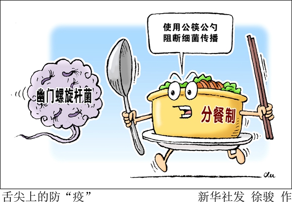 要避免幽门螺旋杆菌的人际传播,共餐制的危害不应忽视。潘红英说,除幽门螺旋杆菌外,共餐制还可能会引起多种疾病的传播,比如甲肝、霍乱、戊肝、细菌性痢疾、伤寒、肠结核、脊髓灰质炎等,这些疾病在共餐的情况下都有传播风险。