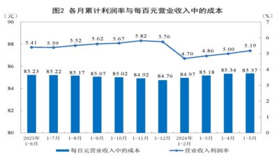 1—5月份,全国规模以上工业企业实现利润总额27543.8亿元,同比增长3.4%(按可比口径计算,详见附注二)。 1—5...