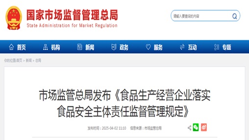 市场监管总局修订出台新规 食品安全总监应由企业管理层担任 记者日前从市场监管总局获悉,该局修订出台《食品生产经营企业落实...