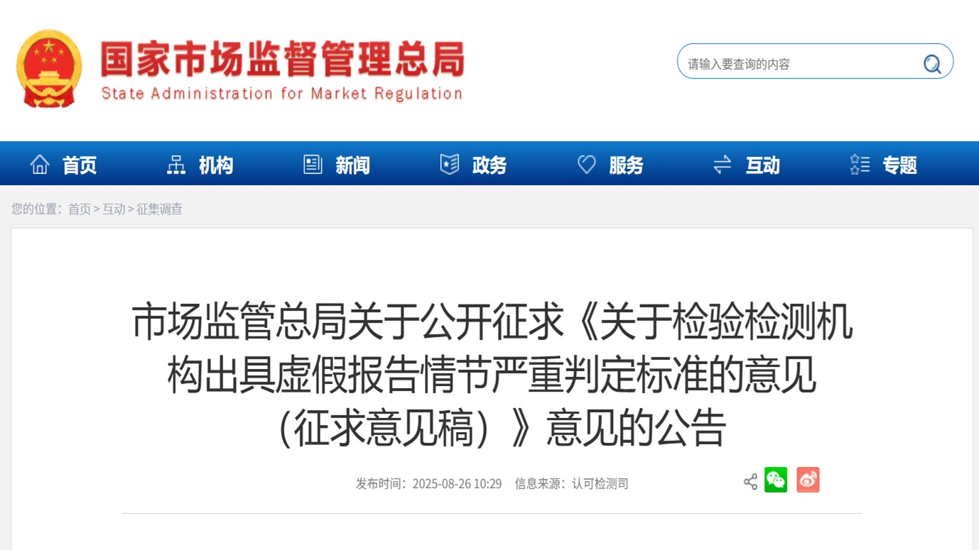 为依法严肃查处检验检测机构伪造检验检测数据、结果或出具虚假检验检测报告的违法违规行为,统一监管执法尺度,市场监管总局组织...