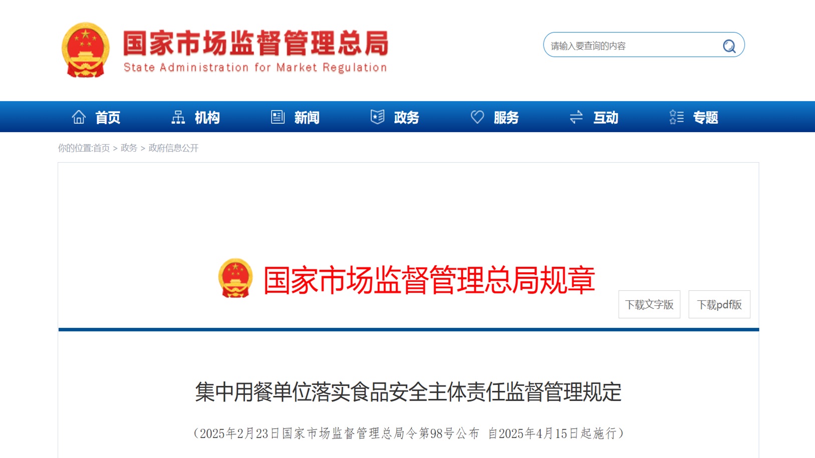 中共中央办公厅 国务院办公厅关于进一步强化食品安全全链条监管的意见(2025年3月13日) 为进一步理清食品安全监管责任...